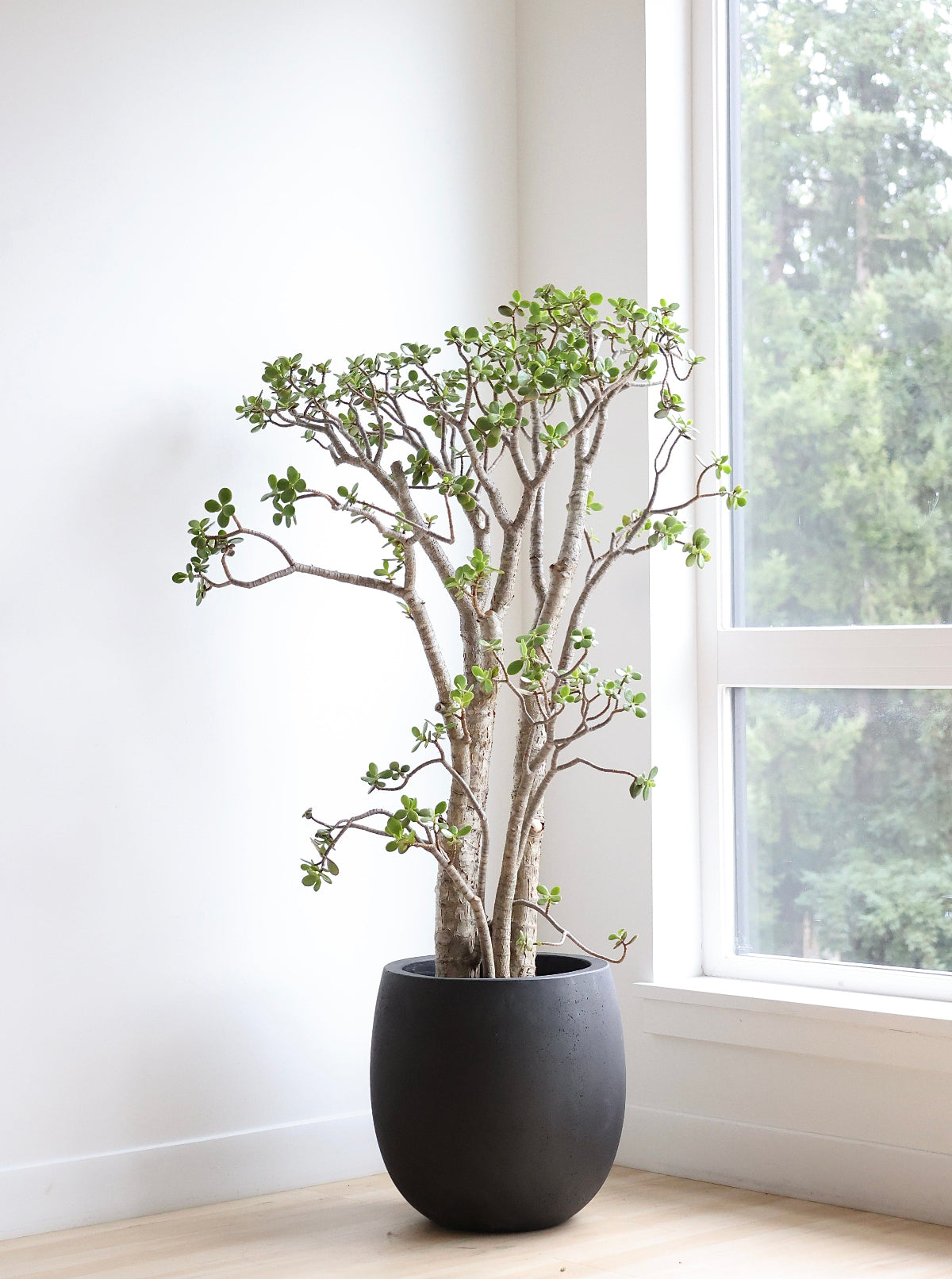 Aka Jade plant, a hardy, low-maintenance succulent with thick, glossy green leaves, often seen as a symbol of prosperity.