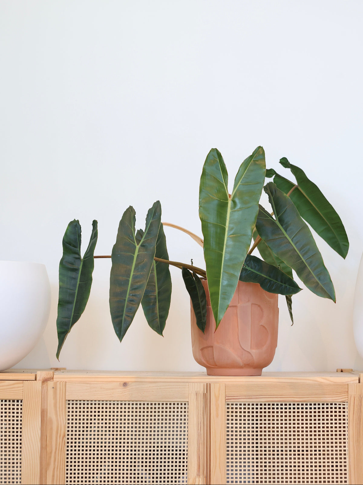A tropical favorite prized for its dramatic, split leaves and bold presence, thriving indoors with minimal care.