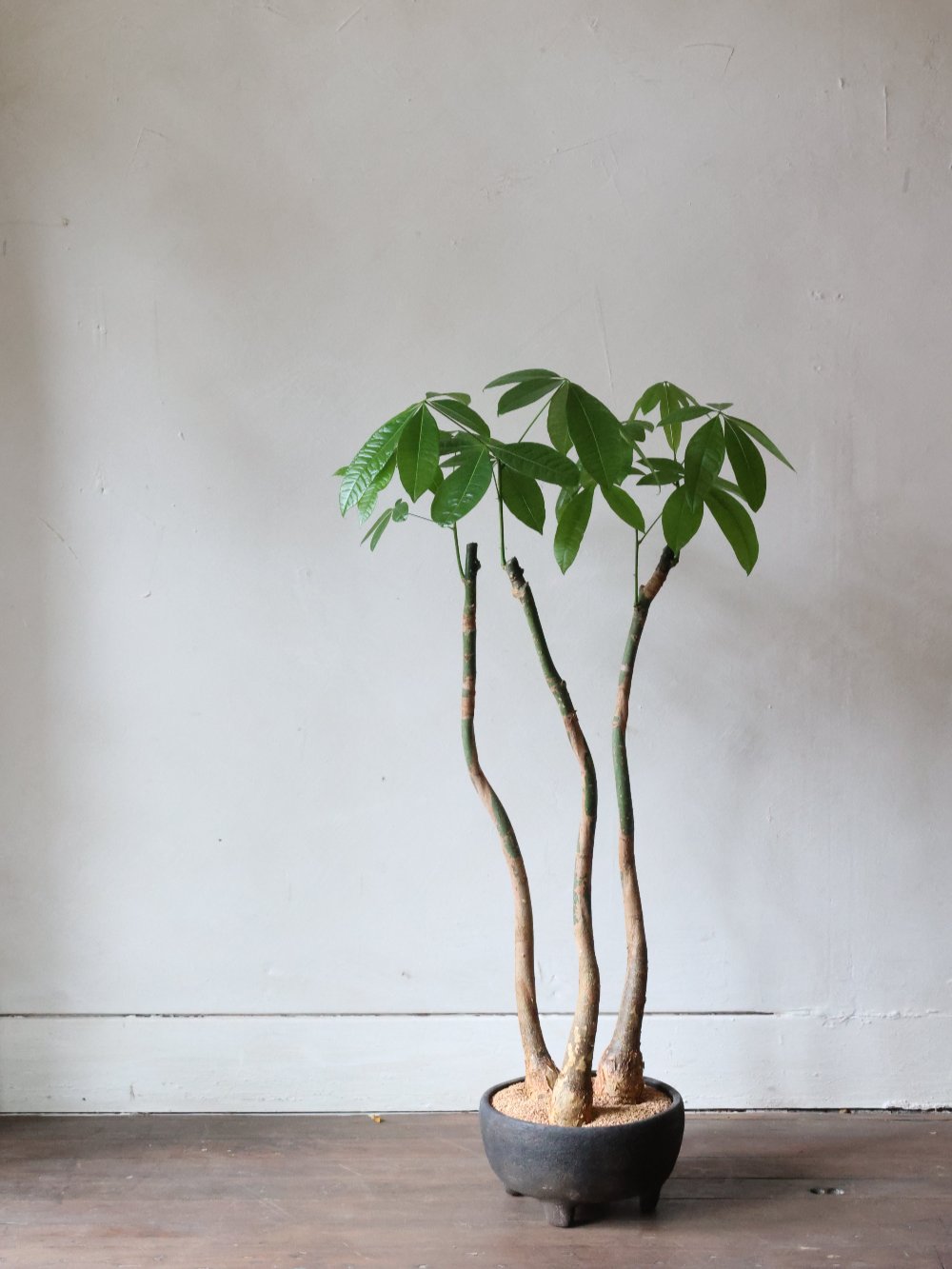 The money tree, often associated with good luck and prosperity, is known for its braided trunk and lush green leaves.