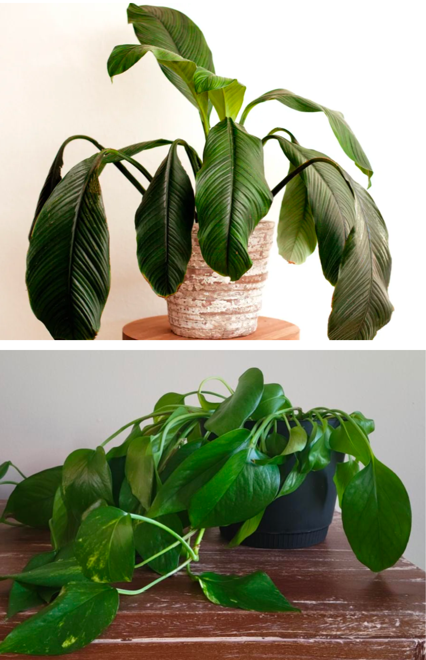 Most foliage indoor plants will develop drooping or wilting leaves when they’re thirsty, which is one of the most common and visible signs that they need water.