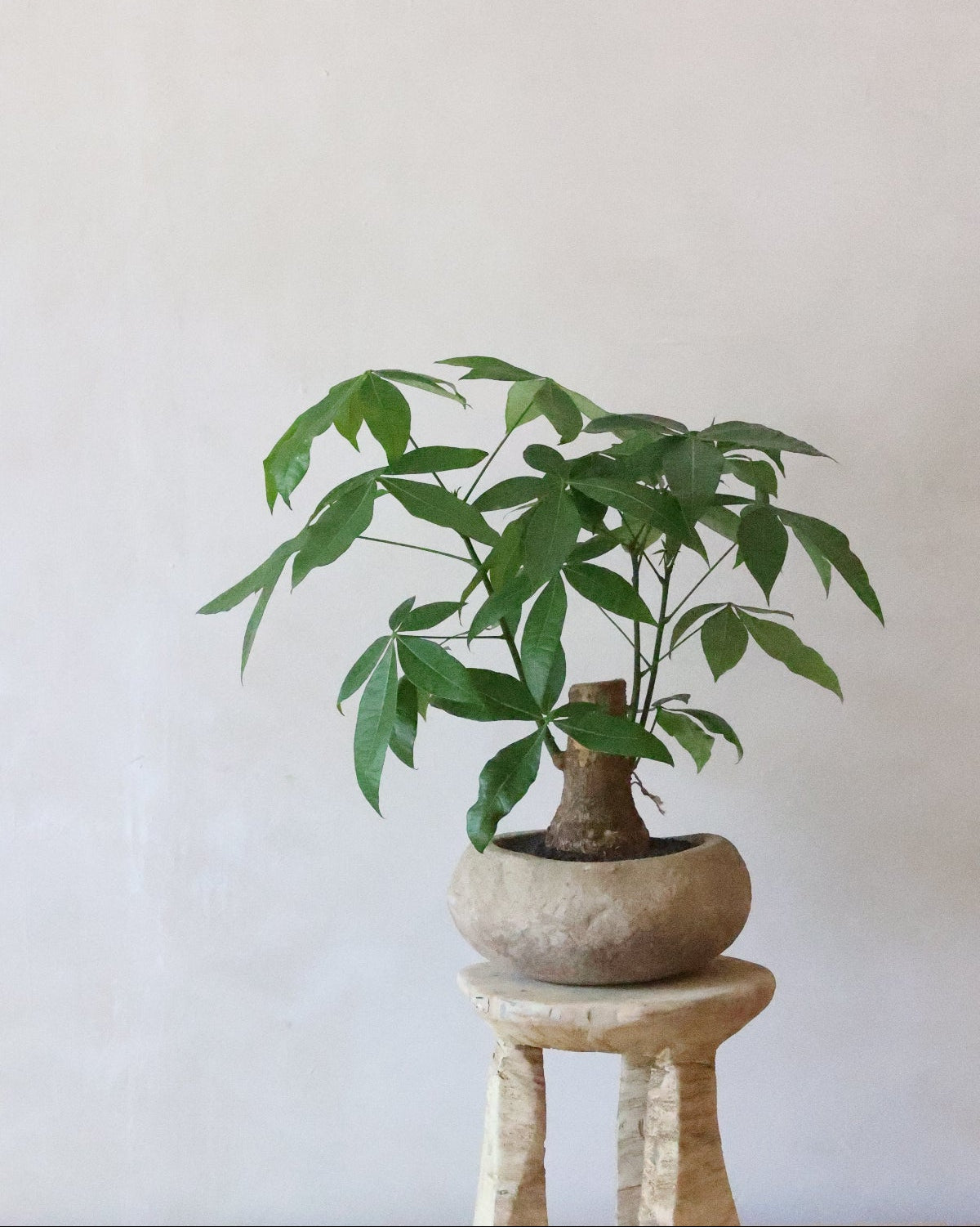 The money tree, often associated with good luck and prosperity, is known for its braided trunk and lush green leaves.