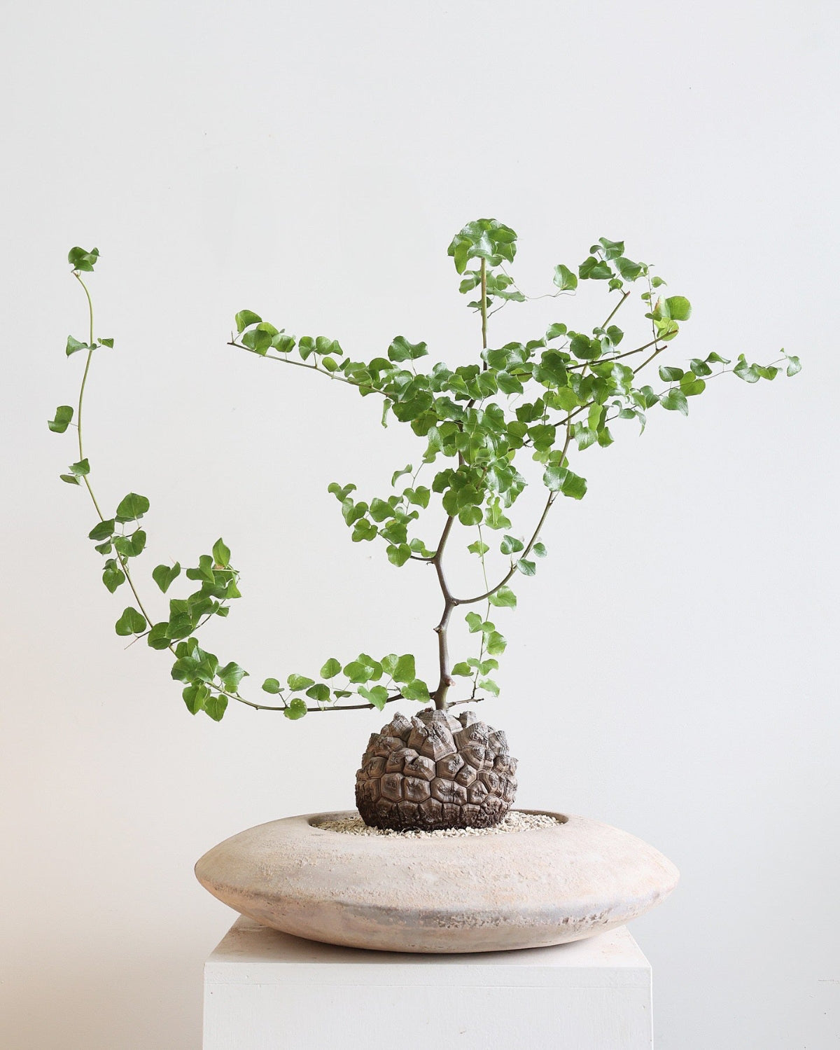 Known as the elephant’s foot plant, and prized for its unique, woody, turtle-shell-like base and delicate vining foliage.